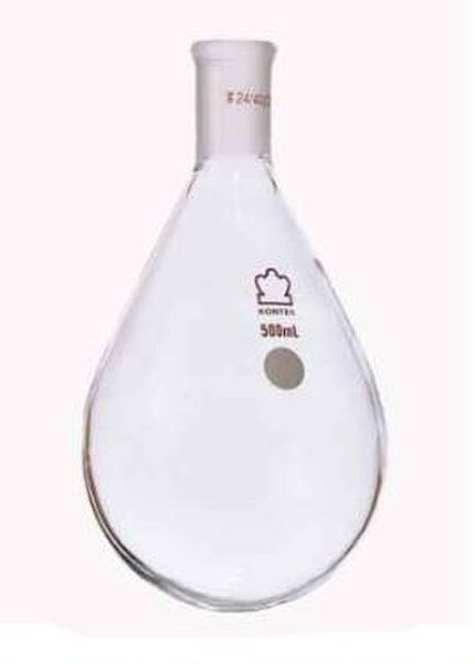 Single neck flask with a Standard Taper outer joint designed for easy recovery of reaction products. Even wall thickness and minimum runout make these flasks ideal for use with rotary evaporators. · Total contents are accessible with a spatula or policeman · Lower portion fits standard heating mantles · Manufactured from 33 expansion, low extractable borosilicate glass conforming to USP Type I and ASTM E438, Type I, Class A requirements