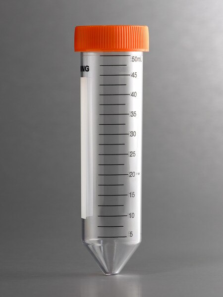 (This is suggested replacement for 431525, 431526, 431527, and 431528.)Corning 50 mL clear polypropylene (PP) conical bottom centrifuge tubes have traditional polyethylene plug seal caps and are bulk packed 25 per bulk bag. Foam racks can be purchased separately. Please check our Technical Information Listing for information on the physical and chemical properties of Corning plastic centrifuge tubes as well as important suggestions for safe use.• Black printed graduations and a large white marking spot. • Maximum RCF is 15,500xg. • Sterile • Nonpyrogenic and DNase-/RNase-free • 95 k PA (14psi) pressure tested