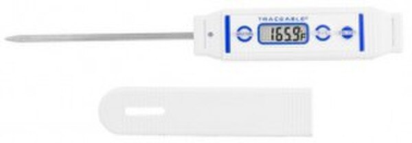 Traceable® Food Thermometer’s membrane switches, ABS body, and stainless-steel probe make it ideal for food labs, food processing, food preparation, and brewing. construction allows it to be used in labs, plants, wash-down areas, and the field. Unit eliminates the dangers inherent in breakable glass and toxic mercury thermometers.