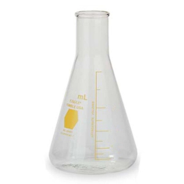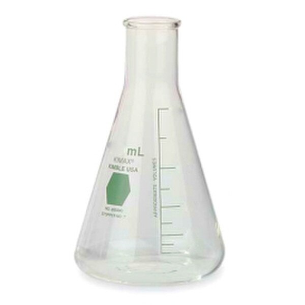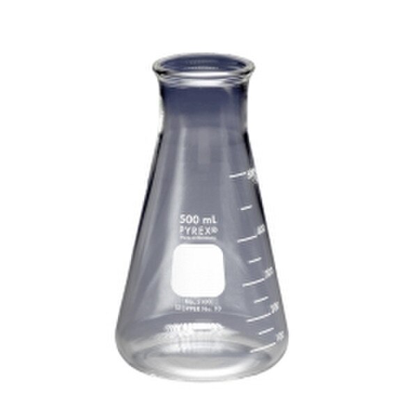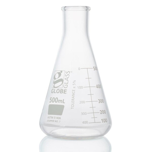 Flask, Erlenmeyer, Globe Glass, 500mL, Heavy Duty, Narrow Mouth, Dual Graduations, ASTM E1406, 1/