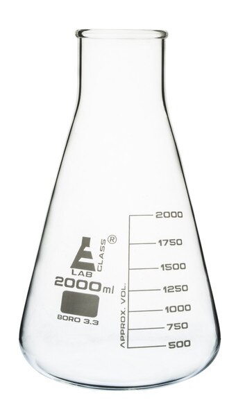 Flask, Erlenmeyer, Globe Glass, 2000mL, Heavy Duty, Narrow Mouth, Dual Graduations, ASTM E1406, 1