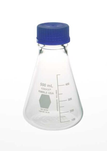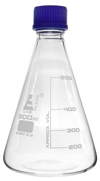 ERLENMEYER FLASK, W/SCREW CAP, BOROSILICATE GLASS, 500ML, Pk/6