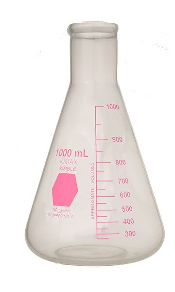 ERLENMEYER FLASK, WIDE MOUTH, BOROSILICATE GLASS, 1000ML, Pk/6